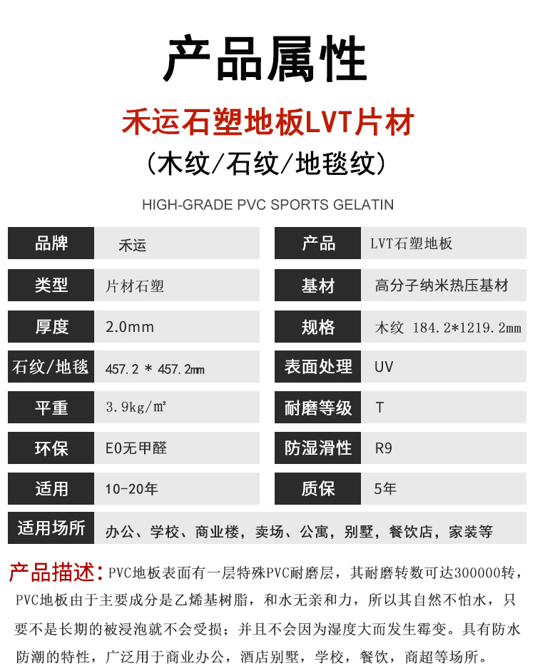 • LVT石塑地板 pvc片材地胶
